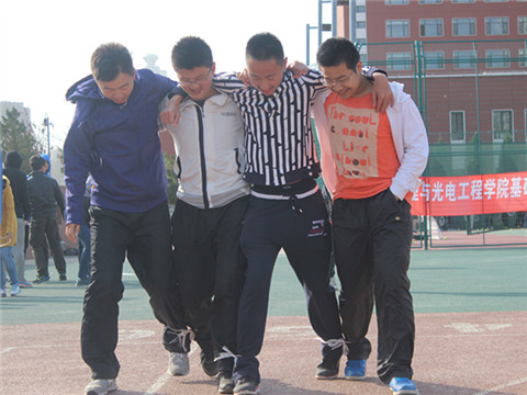 趣味运动会共包含五个项目,分别是袋鼠跳、四人五足、跳大绳、扔沙包和你是我的眼。尽管天气状况恶劣,寒风侵袭,但是同学们依然热情高涨,坚持完成了每一个比赛项目。袋鼠跳中他们积极向上,奋力拼搏;跳大绳中他们身手敏捷,坚持不懈;扔沙包中他们机警冷静,从容不迫。而在四人五足和你是我的眼两个环节中,每个小组齐心合力,彼此互相信任,体现了本次趣味运动会团结向上的精神主旨,促进了各寝室内部与寝室之间的交流。经过几轮激烈的角逐,运动会在一片欢呼声中圆满结束。