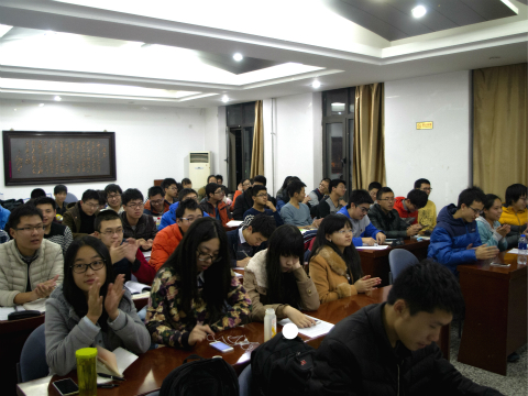 物理1503班作为正方首先开篇立论:“全面放开“二孩”政策是适时的,是正确的,是符合中国中国现在的国情的”。物理1402班反方一辩则认为全面放开“二孩”政策会带来很多负面影响,应该继续实行计划生育政策。精彩的开篇立论结束后,攻辩开始,正方二辩举例论证本方观点,并质疑对方观点。而反方不甘示弱,以强有力的论证反驳正方。攻辩双方据理力争,引经据典,挖掘一切资源来论证本方观点正确,精彩处引得在场观众掌声雷动。