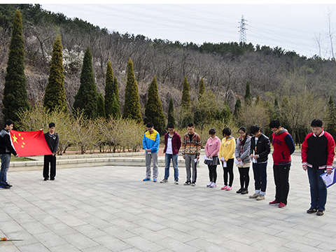 下午,张喆,李晓龙,胡金耀等物理学院分队成员一同乘车前往烈士山公园举行纪念活动。同学们首先参观了烈士山公园的烈士雕像,重温那段历史。随后,队员们于雕像前进行集体诗朗诵,以表达对烈士的悼念及对美好新时代的责任感。“争做优秀的共青团员,用生命,像烈士那样撰写精彩人生。”队员们诗朗的声音回荡在烈士山上空,对烈士们的悼念之情也久久不息。诗朗结束后,队员们在烈士雕像前举行佩戴团徽仪式,重温入团誓词,再次明确自己的职责使命。集体活动结束后,队员们分别对烈士雕像进行清扫,敬献鲜花,默哀致敬。