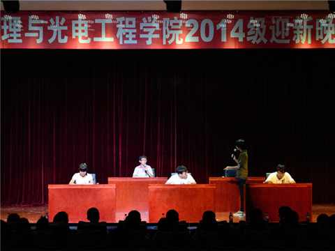 9月21日晚,物理与光电工程学院“我的大学梦”迎新晚会于西综B301圆满落幕。本次晚会由院学生会文化部主办。出席本次晚会的有院团委书记兼12级辅导员佟西原、13级辅导员兼自强社指导老师俞洲、14级辅导员梁勇、院学生会主席兼团委副书记曾祥宇、院文化部部长曹越、校文化部部长陈璐、各学部学院学生会主席及文化部部长,以及14级队各班代班长。