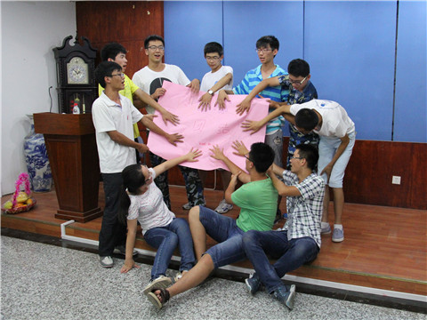 为了让新同学们更好的熟悉彼此,更快的融入校园生活,学生办公室主任兼11级辅导员李一鸣、团委书记兼12级辅导员佟西原、13级辅导员俞洲及14级辅导员梁勇四位老师精心策划。并于9月10日、11日两天晚上带领新生们开展了别开生面的团体辅导活动,这使得大家在紧张的军训中得到了放松,并获益匪浅。