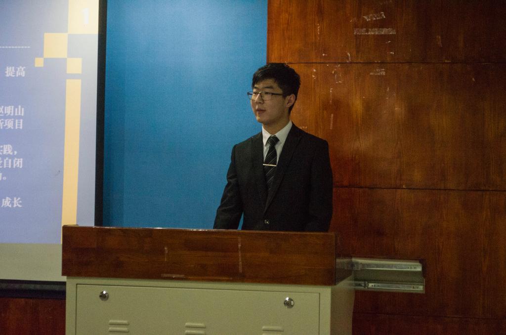 在主持人的引领下,一位位参与答辩的学生干部依次上台进行时限为3分钟的展示。每一位答辩的学生干部都上台对自己所担任的职位进行了介绍,将这一学期以来自己所取得的工作进展和成绩进行了分析,并在最后对未来的工作作出了安排和展望。通过学生干部们的展示,过去的这一学期物理团学社所经历的一幕幕都展现在了眼前,从提前到校对2016级新生的迎新再到举行盛大的迎新晚会;从物理团学社迎来新鲜血液再到三一训练营顺利展开;从各大体育类赛事再到峰岚的角逐,无一不包含了各个学生干部所付出的心血。