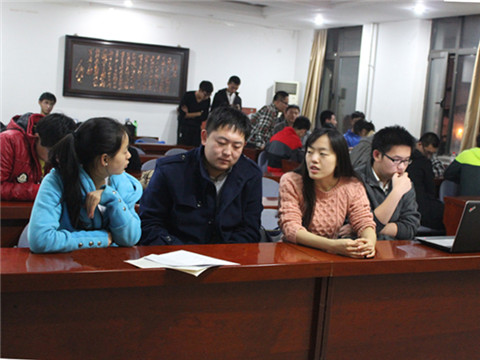 11月21日晚,物理与光电工程学院理论学习中心围绕第十八届四中全会内容组织开展了理论学习活动。到场嘉宾有校理论研究会副会长李晓龙、两组学习部副部长苗卧龙、学院团委常务副书记罗雨清以及理论研究中心部长朱绍英等人,整场会议中同学们激烈讨论,踊跃发言。