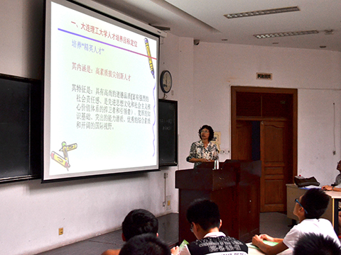 宣讲会开始后,首先由周玲教授对学院概况及我院学生的培养计划进行了简单的介绍。周玲教授向在场新生简述了大学四年的课程体系及培养方案,从专业设置与专业教学等方面为学生展示了物理学院的特点,并总结了往届学生的毕业发展方向。周玲教授强调,物理学院是一个理工并举的学院,我院学生应持有一种热爱知识、崇尚科学、相信真理的精神品质,善于利用各种教学资源,学在大工、学在物理。