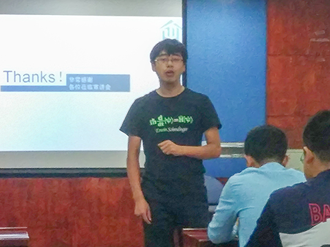 随后,王天成学长对我们介绍了一些他自己的比赛经验与当初自己参加比赛的感受。工科生对创业比赛的优势与缺点,互联网+项目模式的运行策略,各种商业模式的介绍等等令到场的同学赞叹不已。到场的王旭老师也为我们分享了他自己对于创业的看法与体会,鼓励大家响应国家的号召,加入创业的大军中。
