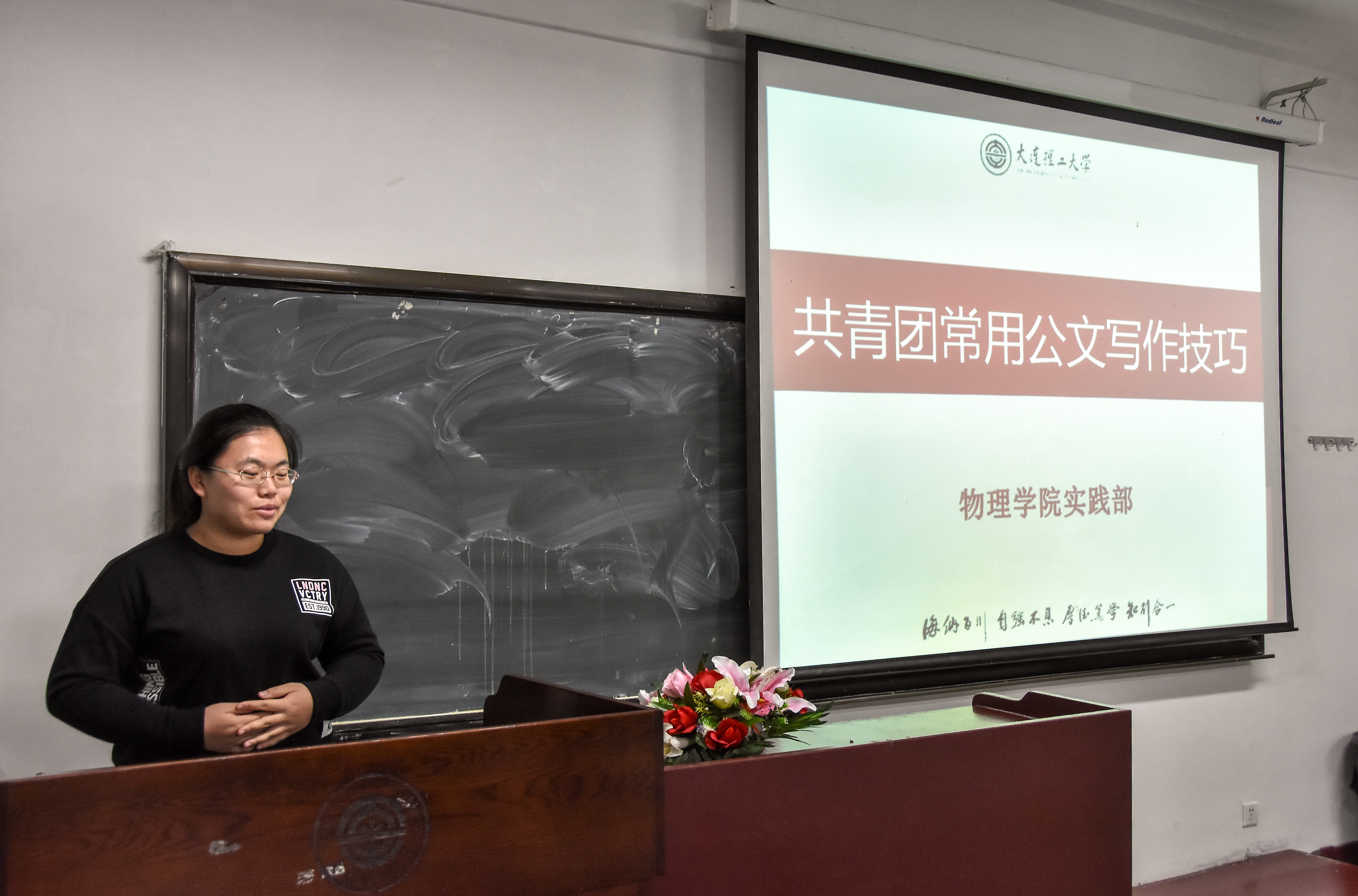 11月29日晚6:30,为满足同学们对PPT制作和公文写作技能的需求,近一步提高同学们的工作水平和服务同学的能力,物理学院于机械馆召开第五次团校,并对相关方面技能进行培训。出席本次团校培训的嘉宾有团委常务副书记李睿意,实践部部长罗英,以及实践部副部长刘璐。