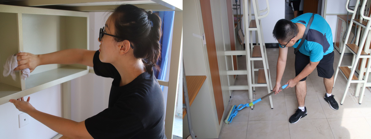 8月29日,距离新生报到还有两天的时间,物理学院各个部门已经开始迎新的准备工作。上午8点,学院团学社全体骨干成员开始打扫学院2018级新生宿舍,同学们领着各自的任务开始检查床柜、擦拭阳台、清除灰尘、拖洗地板等。